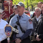 After the fatal fire at 660 East 187th Street in Belmont on Tuesday, April 21, claimed the lives of two people and left residents of the entire building displaced, the FDNY held a second press conference in Belmont on Friday, April 24, to provide an update on their investigation into the 5-alarm blaze. Officials highlighted once again the importance of closing doors in the event of a fire to stop it from spreading, and also confirmed that the two deceased people had been found in the stairwells of the building. Meanwhile, one relative of some of the building’s surviving tenants has raised questions about the responsibility of the property owner following the fire. Read our initial story on the fire here and its aftermath here.