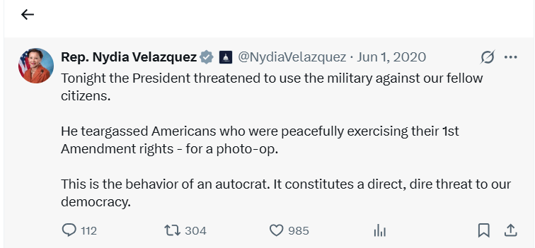 A TWEET BY Brooklyn Congresswoman Nydia Velázquez (NY-7) dated June 1, 2020