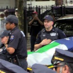 Following the dignified transfer on Monday night, July 28, of slain Det. First Grade Didarul Islam [posthumously promoted from police officer] from Midtown Manhattan, where he was killed by an active shooter earlier that day, several hundred NYPD police officers, detectives, and top-ranking police officials, including Police Commissioner Jessica Tisch, joined Bronx residents on Tuesday, July 29, in a guard of honor as his body was transferred into his local mosque at 1203 Virginia Avenue in Parkchester.