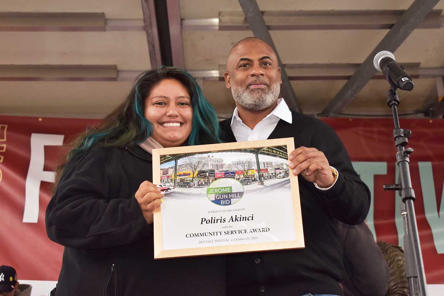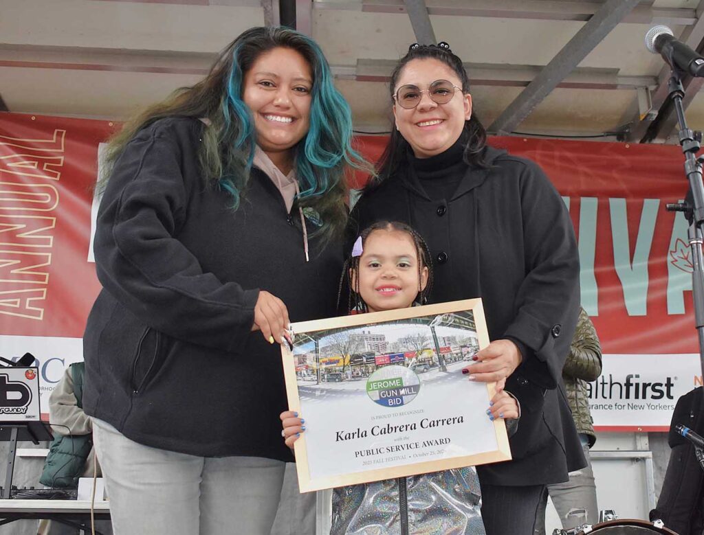 Accepting the award, Polonia said, “Thank you. This is an honor and such a pleasure to work with the Jerome Gunhill BID and with Daniela and the entire team. Thank you.”