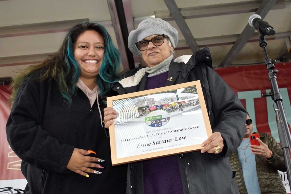 In reference to the Sallie Caldwell Lifetime Leadership Award, presented this year to Esme Sattaur Low, who is also a Bronx Community Board 7 board member, Beasley also paid tribute to Caldwell, a former BID board member who died in recent years and who she said was a great active member of the community.