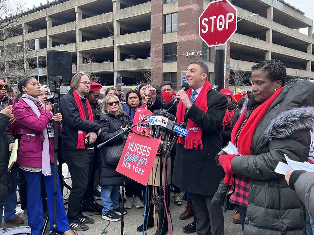 Meanwhile, on Thursday, Jan. 14, as reported, as the nurses at Montefiore Medical Center continued their rally on Day 4 at the same location, local State Sen. Gustavo Rivera (S.D. 33), chair of the health committee in Albany, addressed the demonstrators and thanked those supporting them.