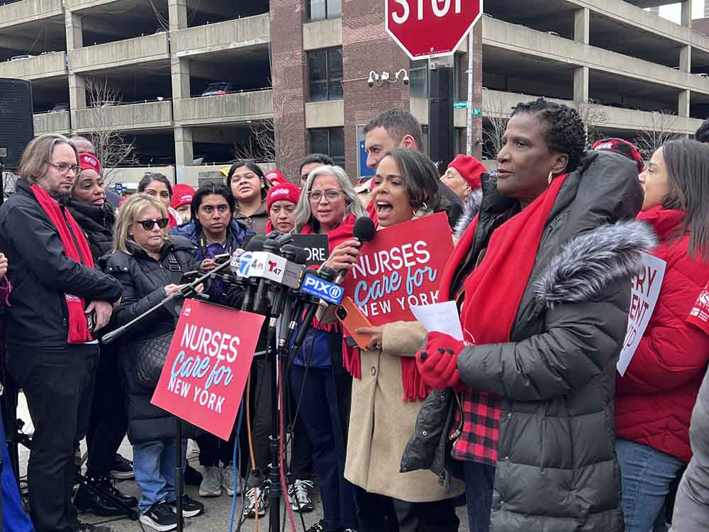 On Friday, Jan. 16, Bronx Congresswoman Alexandria Ocasio-Cortez (NY-14), who represents parts of the Bronx and Queens, shared that she stood in solidarity with the nurses, and said in part in relation to the ongoing strike, “Right now, @nynurses has initiated the largest nurse’s strike in New York State HISTORY. And they need our help. They are asking us to show up to their picket lines (locations in video),, message their CEOs (their site has the link), contribute to their hardship fund, and pledge to support NY Nurses.”