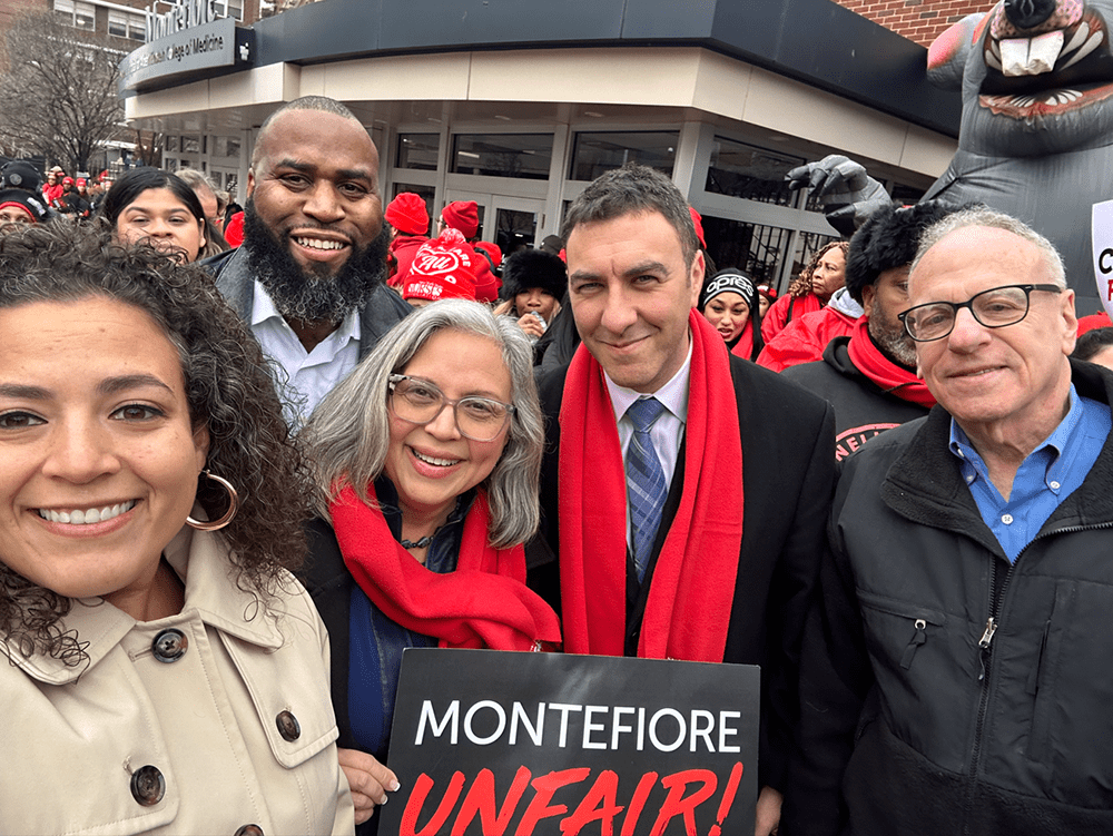 He added, “We want people in The Bronx to have everything that people in other locations expect and deserve so I am calling upon Montefiore to negotiate a fair contract, a fair contract for our heroes, our nurses, and I just want to say to all of you, thank you. Thank you for what you do for our community because our community cannot survive without you, so a fair contract now!”