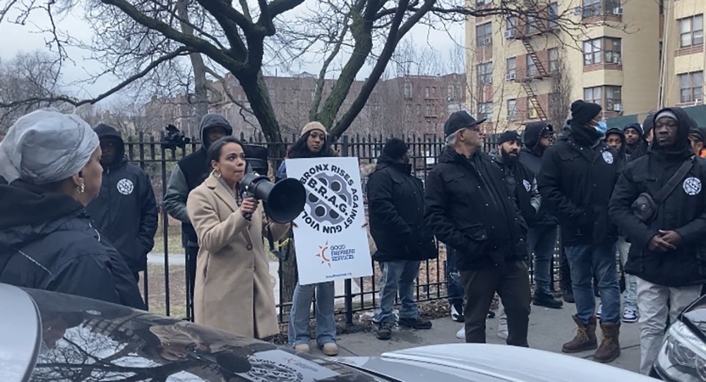 In efforts to convince local youth that their circumstances do not have to define them, at a prior rally held Friday, March 6, beside St. James Park in Fordham Manor, in response to a nonfatal shooting at that location on March 3, in which a young man was hospitalized, Sanchez spoke about growing up in the area, which experiences a high proportion of gun violence.