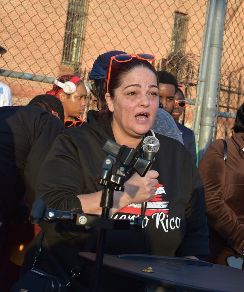 CARMEN RAMOS, WHO lost her brother, Emilio Rosas, to gun violence when he was shot and killed in Belmont on Feb. 17, 2025, urged teens attending a “Safer Streets Community Rally” outside the Kingsbridge Armory in Kingsbridge Heights on March 10, 2026, to speak to family members if they were having trouble.