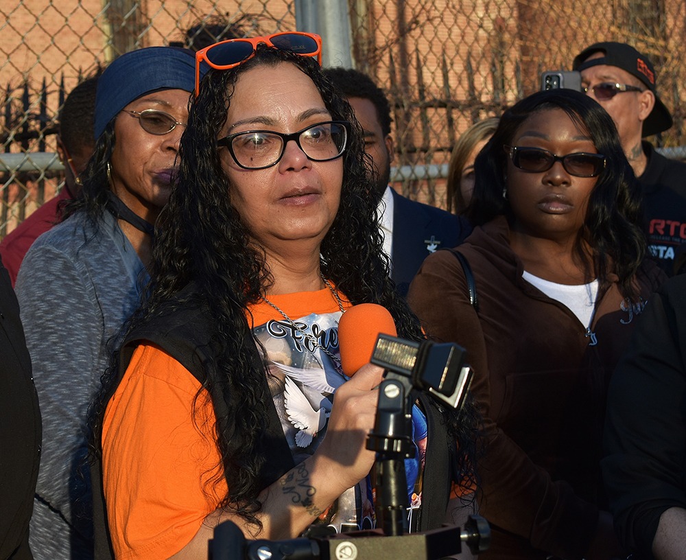 GRIEVING MOTHER MARISOL Miranda says she would like to see stiffer punishments for those who take the life of another while speaking at the “Safer Streets Community Rally” on March 10, 2026, days before the first anniversary of the death of her son, Michael Hernandez, in Brooklyn.