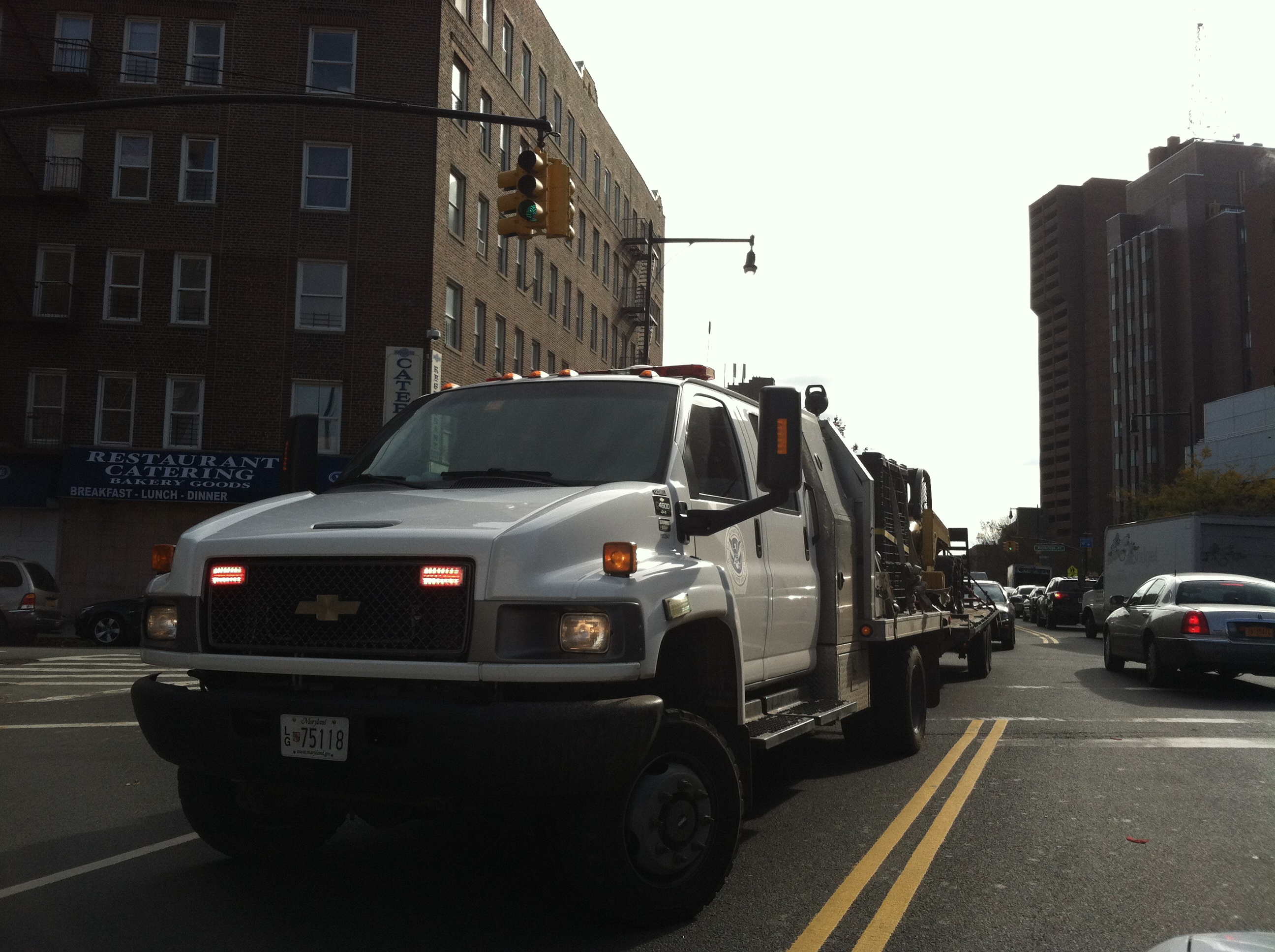I took the photo above on my way to work this morning. It’s a Homeland Security vehicle trailing a long caravan of emergency vehicles from federal agencies like Homeland Security, FEMA and the Army Corps of Engineers. Even saw one from the Maryland Urban Search and Rescue unit. It’s a reminder that the northwest Bronx was extremely fortunate during Sandy’s surge into the northwast and that there is still a lot of work to be done in our region’s most damaged areas.