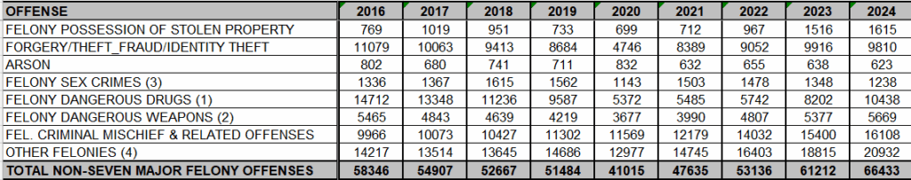 3. Murder & Non-Negligent Manslaughter data source: 2000-2005 Historical Comfinal Data, 2006-2024 Shooting & Homicide Database.