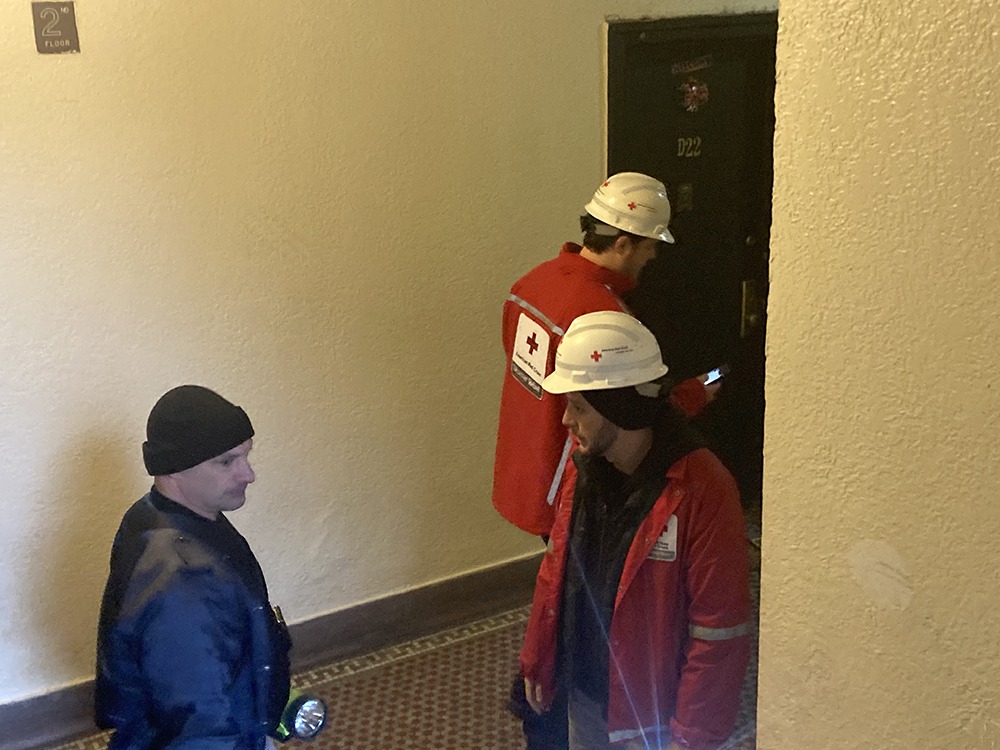 Inside the building, we spoke to a young female resident estimated to be around 20 and asked if she could explain what had happened from her perspective. Speaking in Spanish, she said, “I can’t really say much because I was sleeping.” She said her sister, who was under 18, woke her up. Her sister then said she heard shouts from neighbors and noticed a lot of smoke.