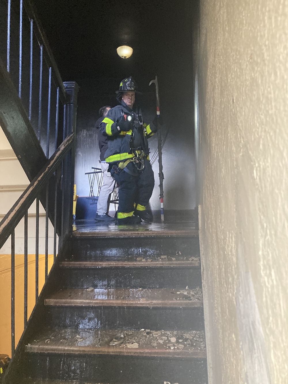 Norwood News asked Stelps if there had been a lot of smoke as he was exiting. He said not so much in his section. “In my apartment, there was smoke coming because they [different building sections] attach,” he said. “There’s a two-door between each section since we don’t have a fire escape so the smoke was coming in through that door.”