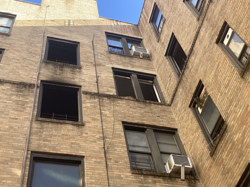 Asked if the fire was mainly on the exterior side facing Kingsbridge Avenue as opposed to the interior courtyard side of the building structure, he said, “The firefighters were working from both ends.” Burned out windows were later seen both on the courtyard interior side as well as on the exterior side.