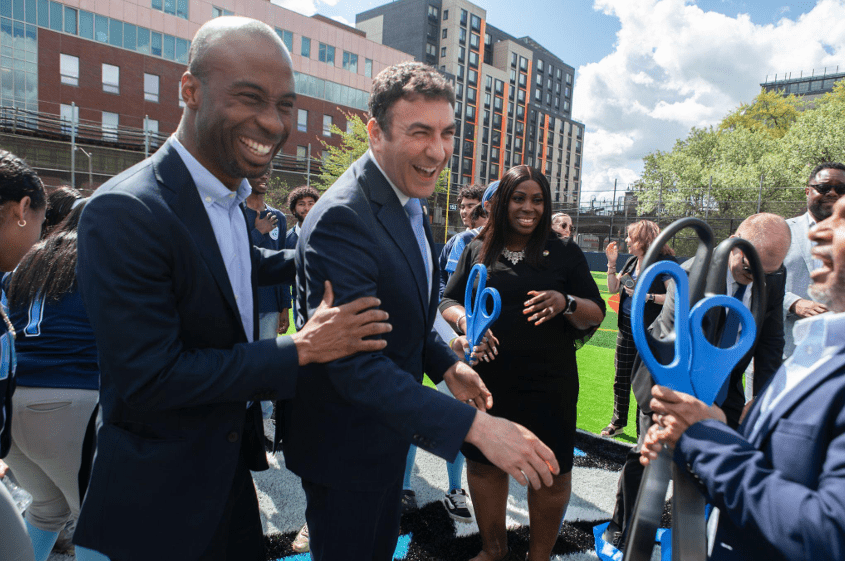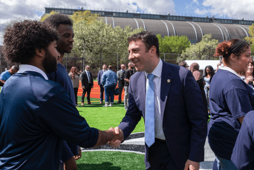 Council Member Eric Dinowitz (C.D. 11), alongside other elected and city-appointed officials, joined administrators, teachers, and students from Walton Campus in Kingsbridge Heights on Friday, April 17, to cut the ribbon on a brand new athletic field.