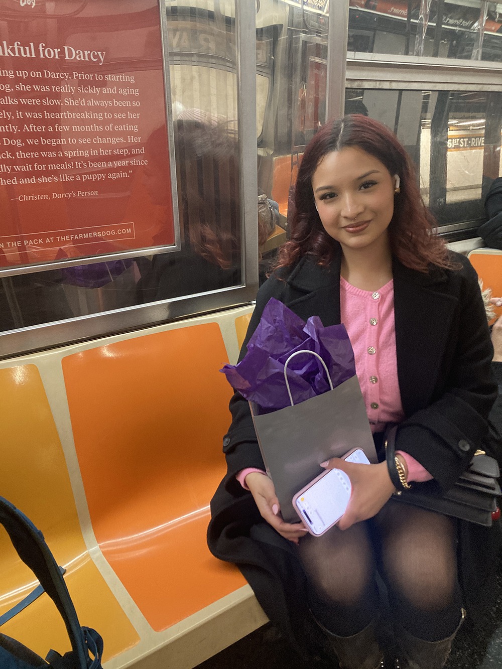 Later, we spoke to Nat, 21, who was waiting on the platform inside the 170th Street subway station, holding a gift. We asked her if Valentine’s Day was an important day for her, personally. She laughed and as her eyes lit up, she said, “Yeah, it’s kind of crazy! I’m seeing my ex, yeah! We dated like three years in high school so we were, like, babies! We were, like, two years no contact and I’m seeing him again, so it’s kind of crazy! I’m excited! I’m going to see him today and we’re getting breakfast tomorrow.”