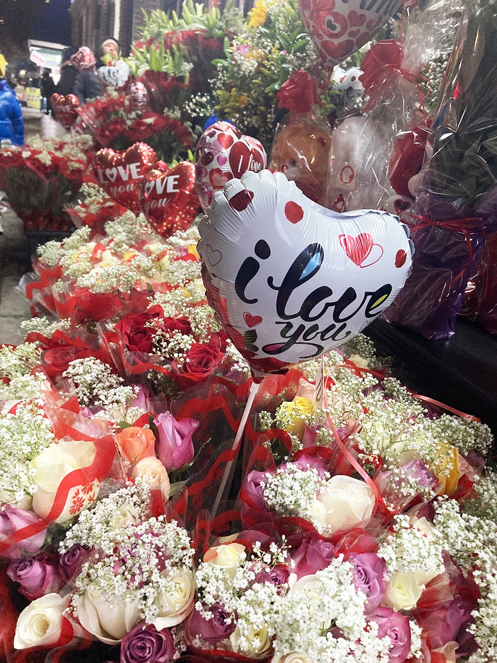 FLOWERS AND BALLOONS are seen on sale on East Gun Hill Road near Jerome Avenue in Norwood on Friday, Feb. 13, 2026.