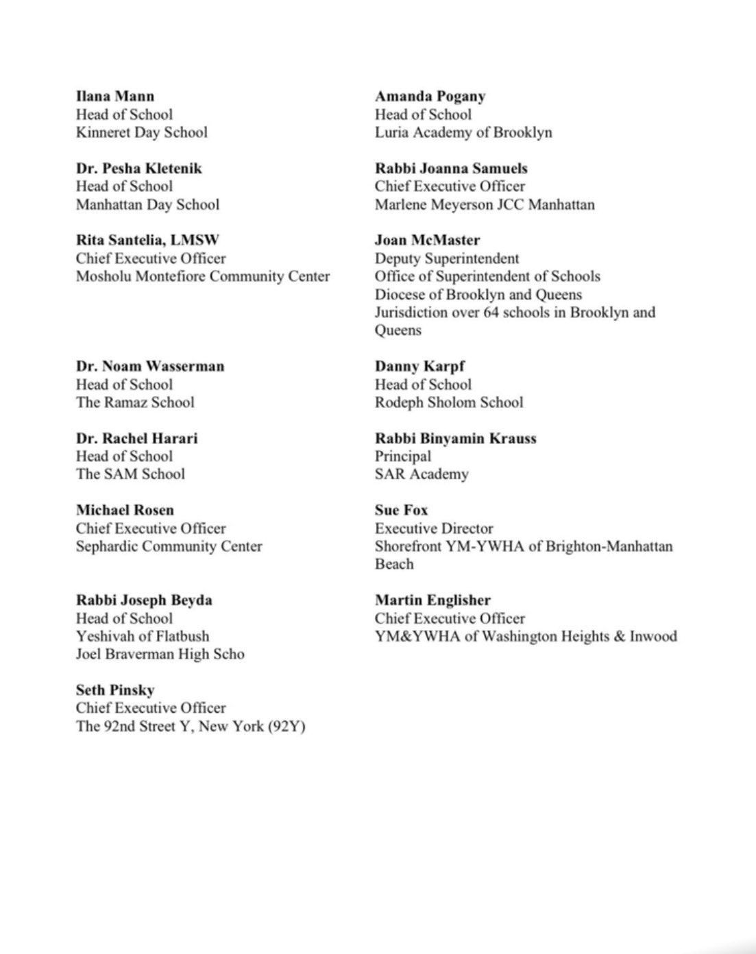 Source: The UJA-Federation of New York, Conference of Presidents, ADL New York/New Jersey, AJC New York, Orthodox Union, JCRC-NY, New York Board of Rabbis, Teach NYS, The Rabbinical Assembly, StandWithUs, and Union for Reform Judaism,