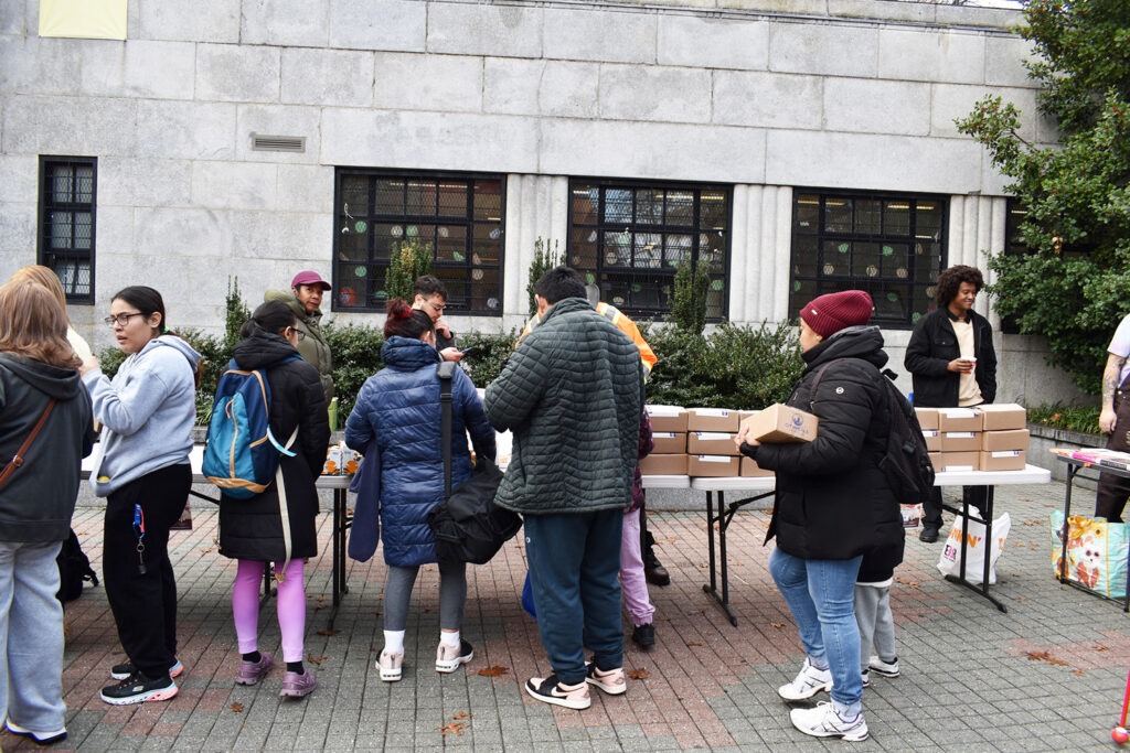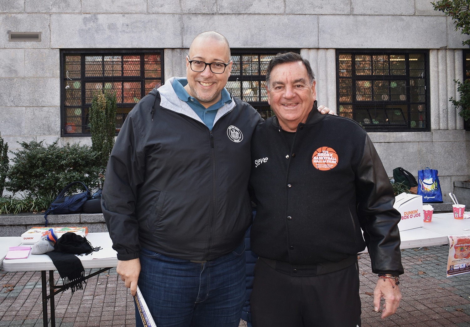 In addition to the City Meals on Wheels pre-packaged Thanksgiving meals distributed on the day, fruit, vegetables and donuts were also made available to residents. Stephen Bogart LeBow of the Bronx Basketball Hall of Fame was also present on the day. LeBow had spoken passionately about the Hall of Fame project during one of the recent hearings on the redevelopment of the Kingsbridge Armory in the context of potentially using the space to inform local kids and youth about the The Bronx’s long and storied basketball legacy.
