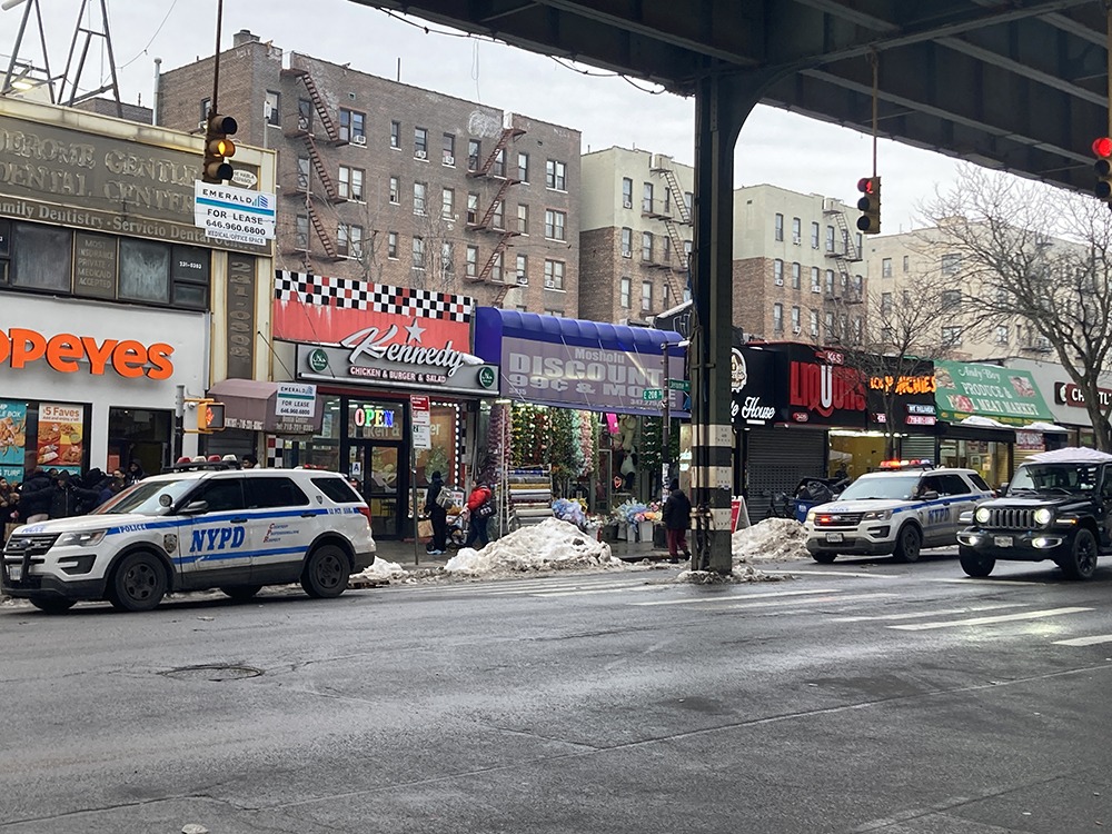 They said these zones focus on the areas where young people are most at risk — commuter corridors, bus stops, and routes to and from school. The NYPD was seen Thursday, Feb. 26, parked outside Popeye’s fast food restaurant on Jerome Avenue near Mosholu Parkway in Norwood, where, typically, school kids are seen hanging out after school. Cops were heard gently directing kids to keep the sidewalk clear for passing pedestrians. As above, the shooting of 16-year-old Christopher Redding in Kingsbridge took place in an area where kids typically hang out after school.