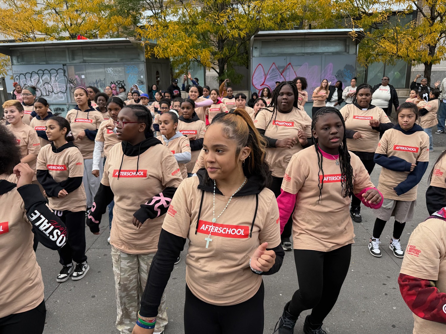 Dozens of students and families gathered as the plaza came alive with music and dance, symbolizing how afterschool programs serve as safe, engaging spaces that help young people build confidence and community.