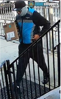 The NYPD is asking for the public’s help identifying the two people seen in the attached photos disguised as Amazon workers who they say are wanted in connection with a residential burglary that occurred in Unionport.