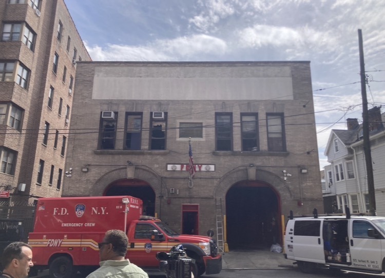 THE SCENE AT 2928 Briggs Avenue, a two-story (50X120) firehouse and headquarters of Engine 79/Ladder 37 in the Bedford Park section of The Bronx on Friday morning, March 27, 2026 after an early morning fire broke out at the building.