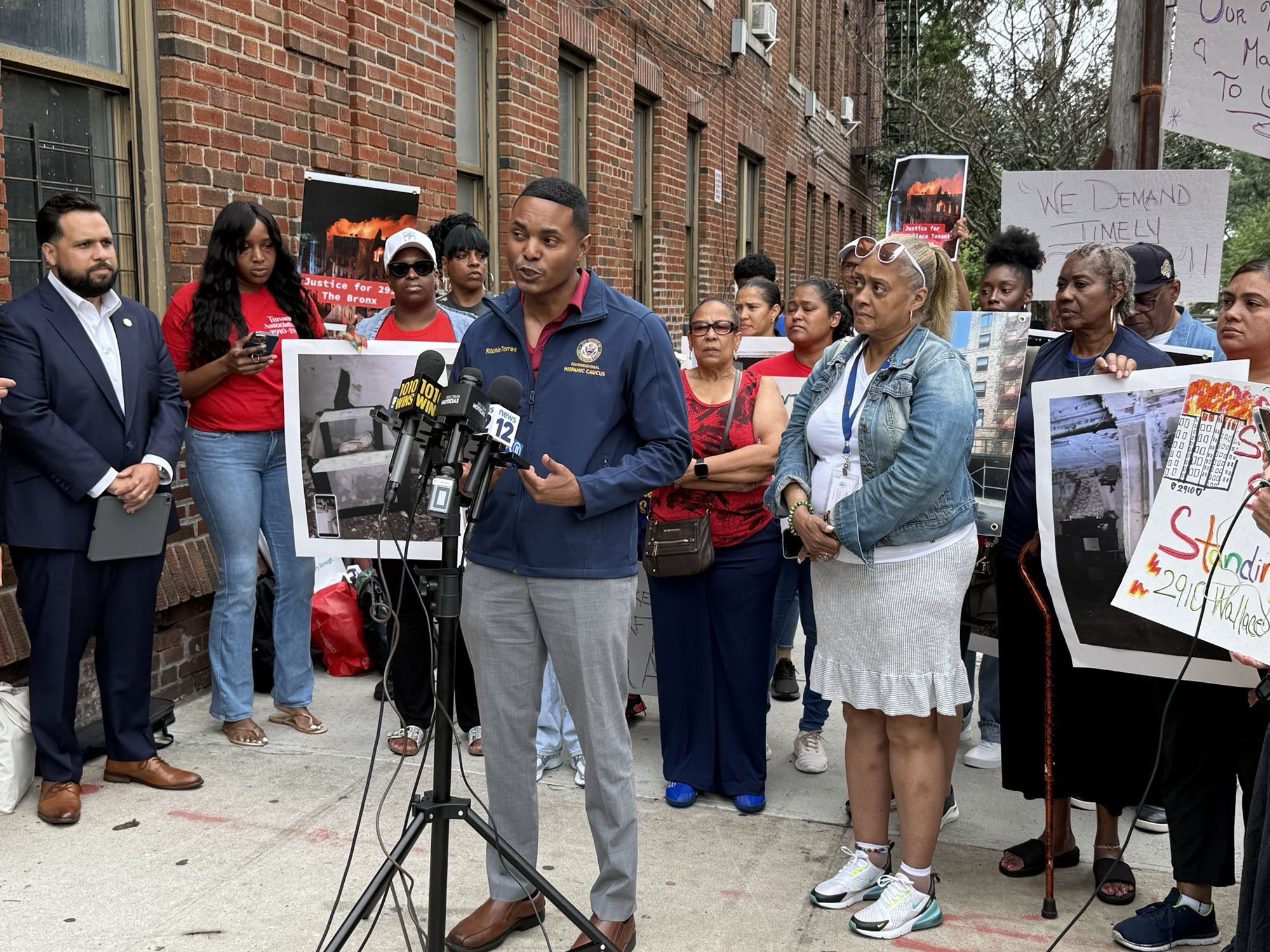 Meanwhile, Councilman Kevin Riley (C.D. 12), who was not present at the rally, said of the situation, “Six months have passed since the devastating fire at 2910 Wallace Avenue, and still, too many of our Bronx families remain without answers, without stability, and without a place to call home. This level of neglect is unacceptable, and sadly, not uncommon in communities like ours that face systemic disinvestment and landlord abuse.”