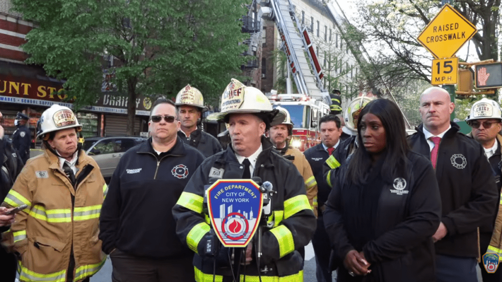 During a press conference held at the scene held on Tuesday afternoon, FDNY Commissioner Lilian Bonsignore, surrounded by other FDNY officials and Bronx Borough President Vanessa Gibson, described the day as tragic. She said the residential building also contained a couple of stores on the first floor and commended the firefighters who responded who she said carried out lifesaving work, “rescuing people, evacuating the building, fighting fire, and providing the highest quality medical care possible.”