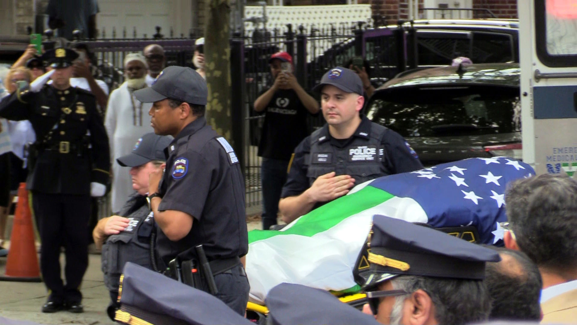 As standing officers saluted, other officers wheeled out the gurney carrying Islam’s coffin, draped with an NYPD flag, with one hand, while holding their other hand across their chests and transferred their colleague’s remains into the mosque through a side entrance. Some congregants appeared visibly shaken. One older man used a handkerchief to wipe away tears, while a young man was seen putting his arms around another man to console him.