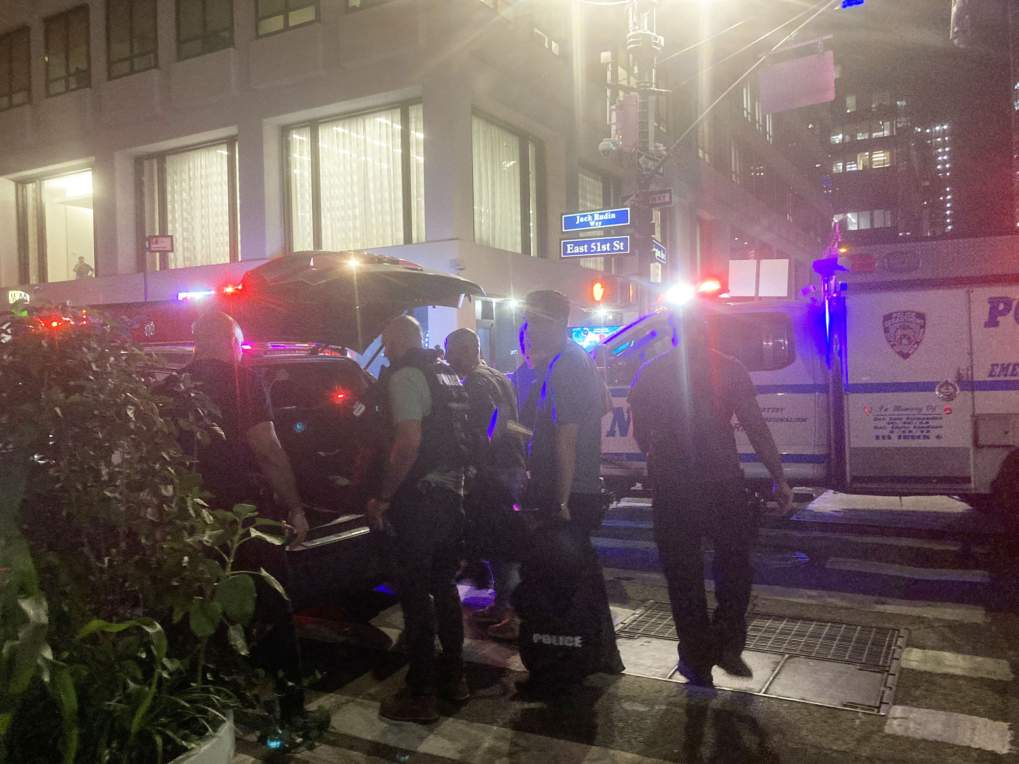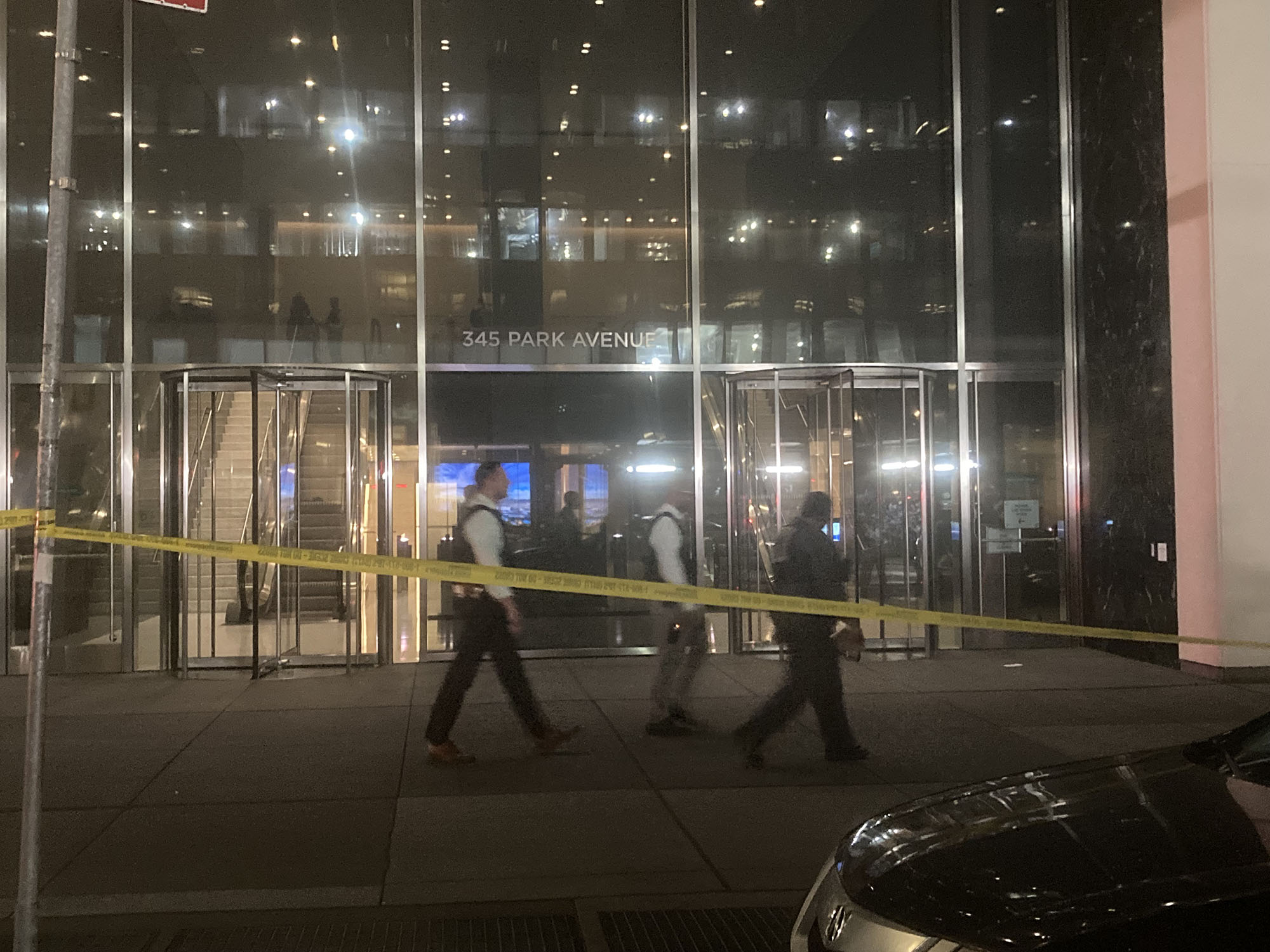 Tisch later said police started to receive multiple 911 calls at around 6.28 p.m. on Monday for an active shooter inside 345 Park Avenue at 52nd Street. She said what happened next was still under investigation, details were still coming in, but shared what was known to date, saying surveillance video showed a man exiting a double-parked, Black BMW alone on Park Avenue, between East 51st and 52nd Streets, carrying an M4 rifle in his right hand.