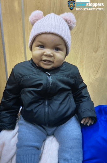 THE NYPD IS asking for the public’s help locating a 9-month old baby girl (pictured) of Bryant Avenue in The Bronx in connection with a custodial interference incident that occurred in the Charlotte Gardens section of The Bronx. They are searching for the baby’s mother, Alexandria Quinones, 29, of Boston Road in connection to the incident.