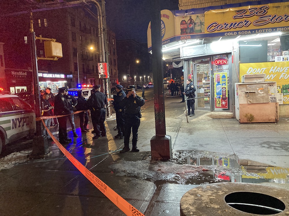 An officer on scene later said the shooting took place outside the 238 Corner Store deli located at the corner of 238th Street and Broadway.