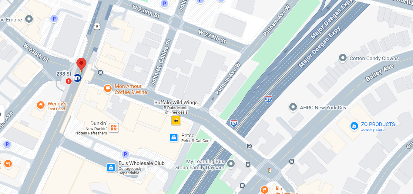 One local deli employee working at another nearby deli on West 238th between Broadway and John M. Collins Place / Review Place, said he heard around three shots but did not see what had happened. Another man who had been inside the nearby Bronx Alehouse on 238th Street between Broadway and Putnam Avenue opposite John M. Collins Place / Review Place, said he didn’t hear any shots and just saw police arrive later.
