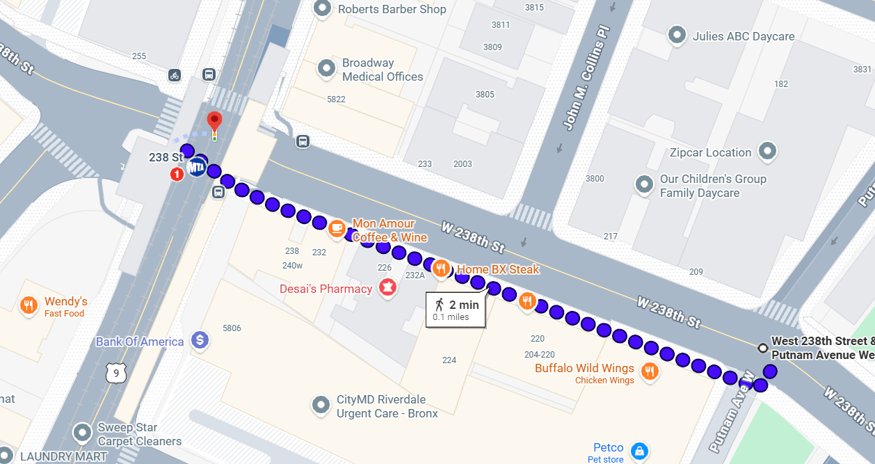 According to another police source, the shooters were on an elevated section of 238th Street between Putnam Avenue and John M. Collins Place / Review Place and fired the shots at the victims who were reportedly outside 238 Corner Store on the corner of Broadway and 238th Street, a distance of under 0.1 miles.