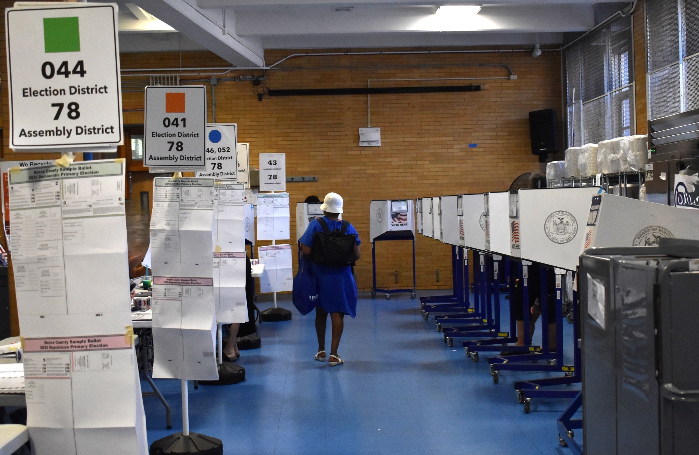 On Election Day, we spoke to some people outside P.S. 86 Kingsbridge Heights School poll site, located at 2756 Reservoir Avenue in Kingsbridge Heights. There were not too many voters there, possibly due to the extremely hot weather. Some had told us they were waiting for the sun to go down before heading out to vote. While there was scaffolding outside to shade from the sun, there were no lines, only poll workers letting voters know where to go.