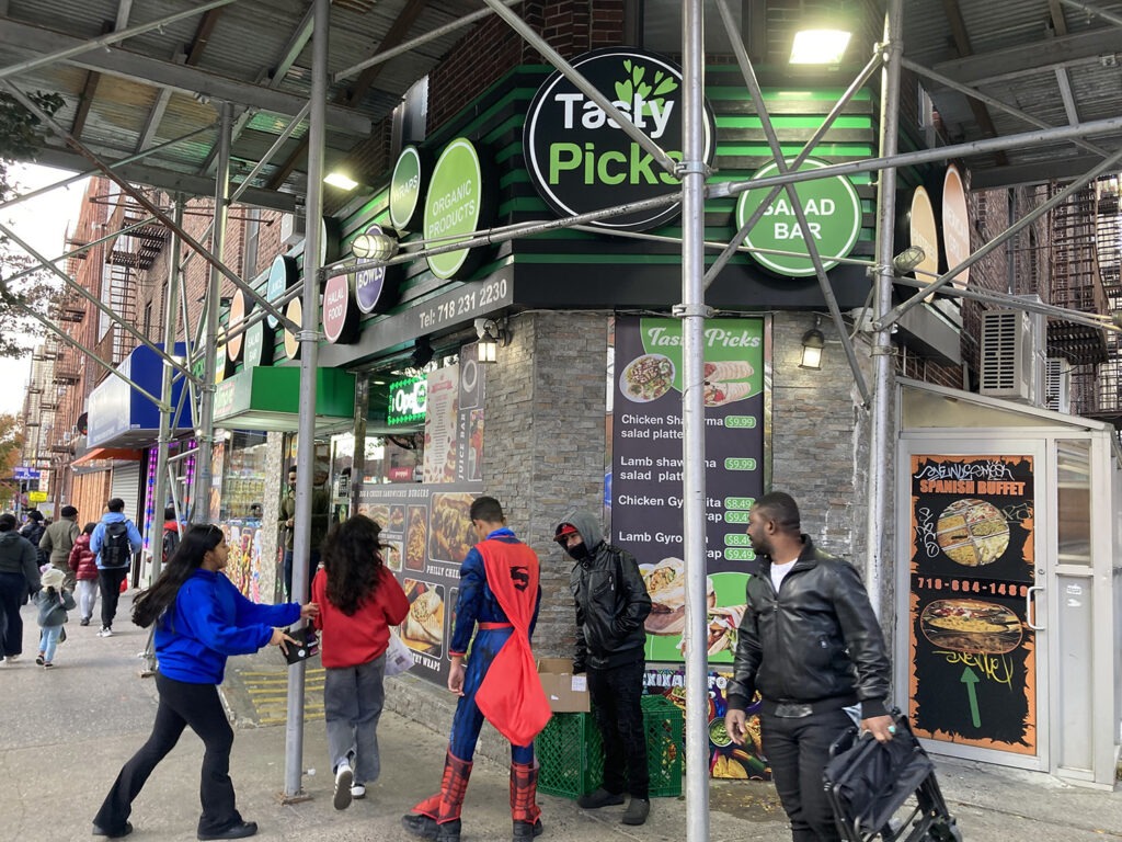 In Norwood, the same day, kids in Halloween costumes and painted faces milled in and out of stores trick or treating. As one group of youngsters (not those pictured) entered Tasty Picks on East Gun Hill Road and Rochambeau Avenue to be told that a store employee was already outside with a bucket handing out candy, one young boy was overheard saying, “Please sir, my mom is kinda homeless.”