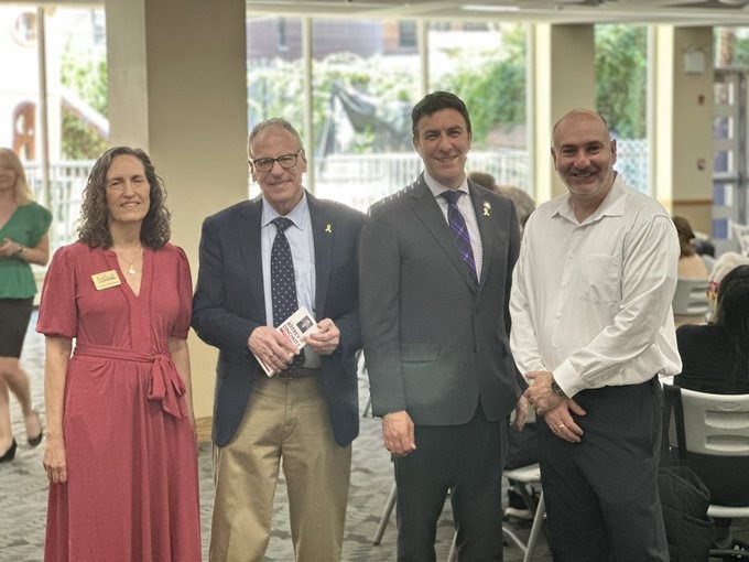 ASSEMBLYMAN JEFFREY DINOWITZ (2nd from left) and Councilman Eric Dinowitz (2nd from right) join attendees and other officials from Selfhelp Community Services which hosted its latest “Coffee House” event for Holocaust survivors at the Hebrew Institute of Riverdale on Thursday, Sept. 18, 2025