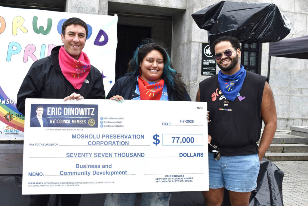 The councilman also used the occasion to announce some additional funding for MPC, saying, “I want to right now present the Mosholu Preservation Corporation with a check for $77,000 for them to continue their really incredible work for all of us here. Thank you.”