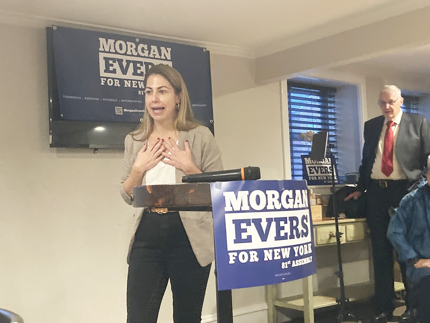 Teacher, disability activist, and community leader Morgan Evers launched her campaign on Sunday, Dec. 7, for New York’s 81st Assembly District, the seat currently held by Assemblyman Jeffrey Dinowitz for over 40 years, at a standing-room only, kick-off fundraiser at Connaughton’s steakhouse basement room in Riverdale.