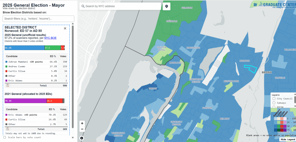 For a breakdown of how local constituents voted in the recent mayoral election, which was won mainly on the topic of affordability by Mayor-elect Zohran Mamdani, who had campaigned heavily in some of those less affluent neighborhoods, click here and see the attached chart above.