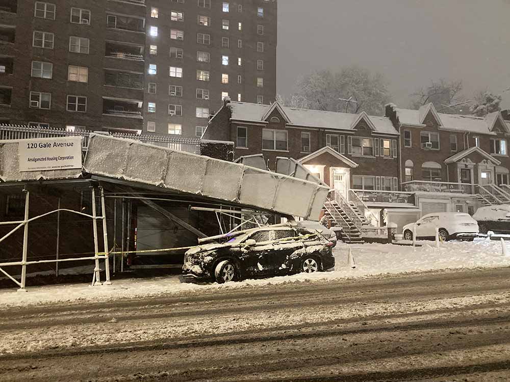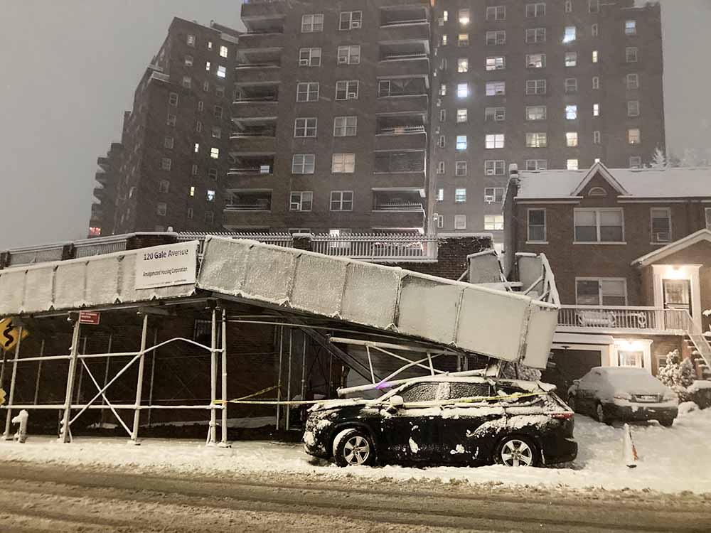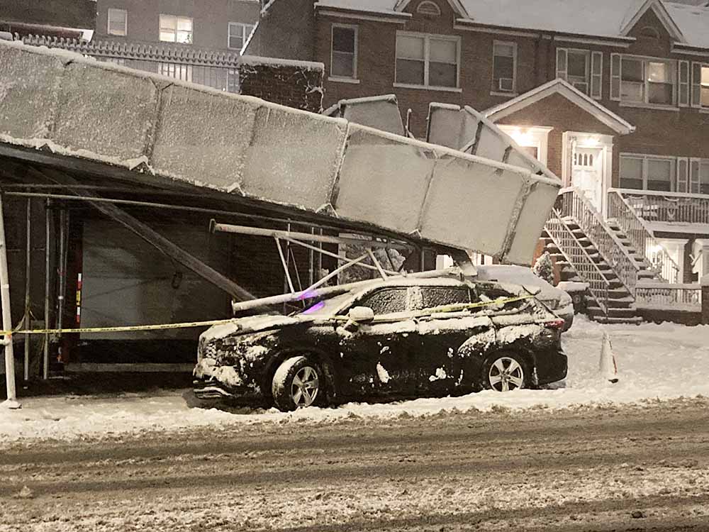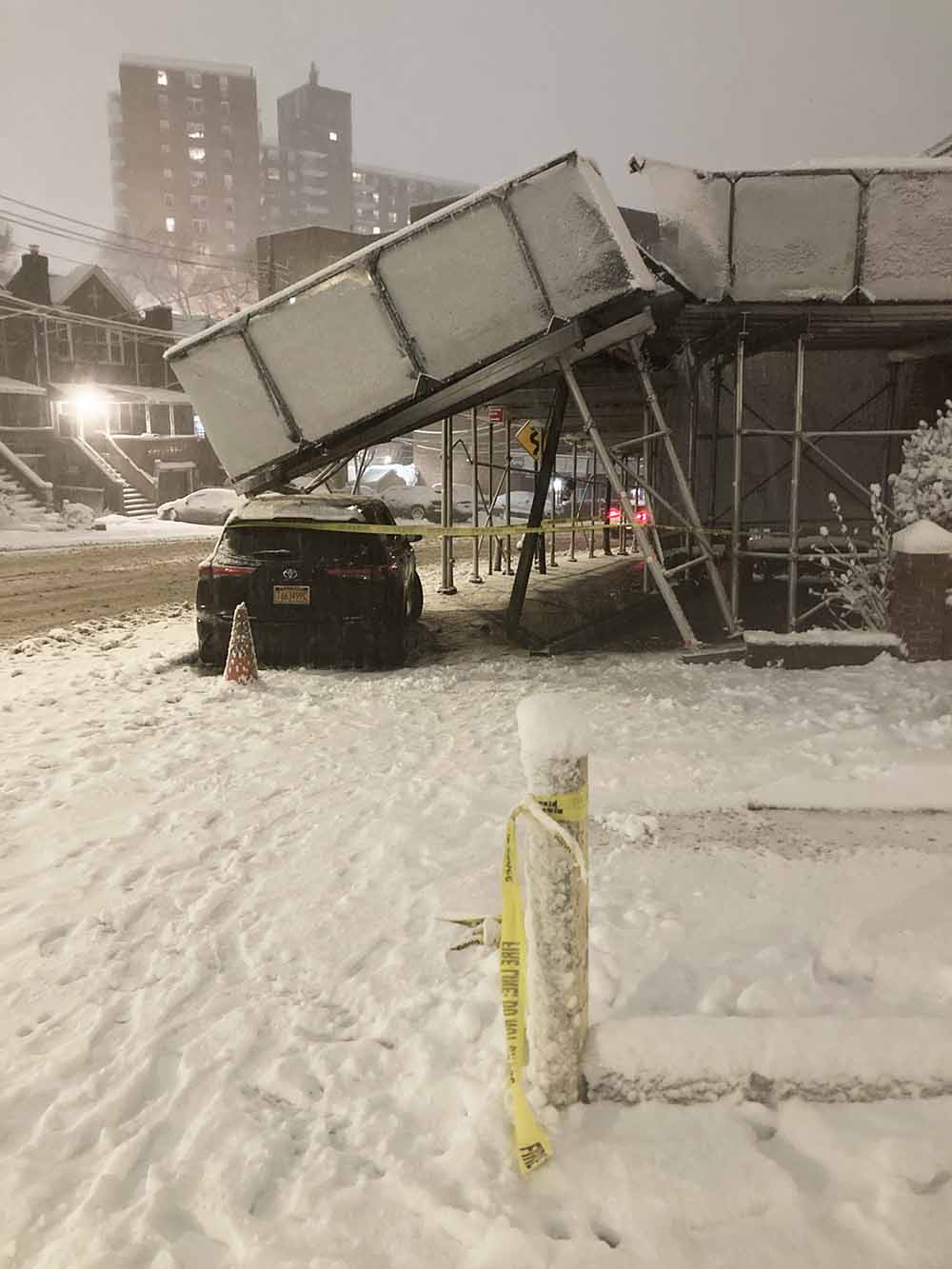 UPDATE Van Cortlandt Village: No Injuries Reported after Car Crashes into Scaffolding Amid Snowstorm