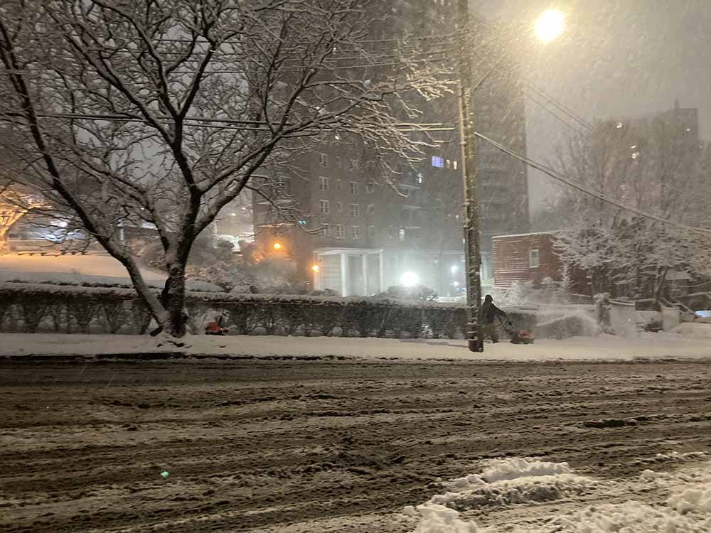 No emergency services were at the scene by the time we got there. City workers were seen spreading salt and clearing snow later Sunday night in different parts of the borough.